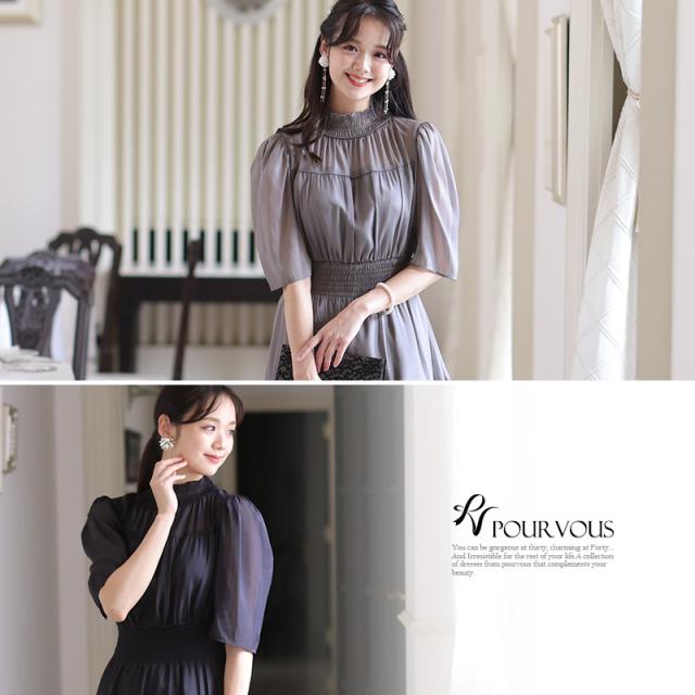 光沢感がある生地を使用した上品な印象のワンピース