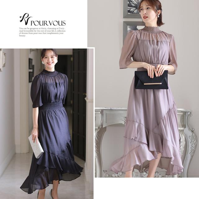422222025 パーティードレス 結婚式 ワンピース ドレス フォーマルドレス 大きいサイズ 体型カバー 上品 フォーマル 小さいサイズ 小柄 お呼ばれ 顔合わせ 韓国 春 夏 秋 冬 20代 30代 40代 50代 ミセス 150 50代 袖あり 袖付き 袖 半袖 七分袖 ロング丈 マキシ ハイネック