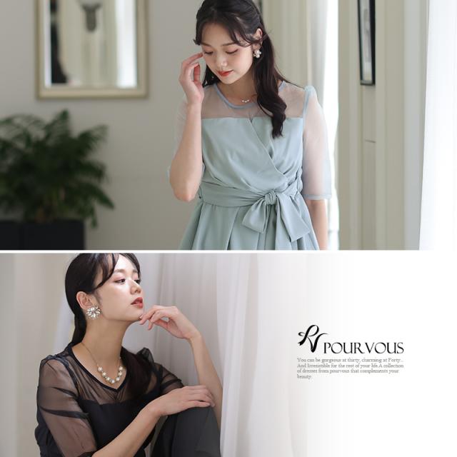 デコルテと袖の透け感が可愛いビスチェ風セットアップ