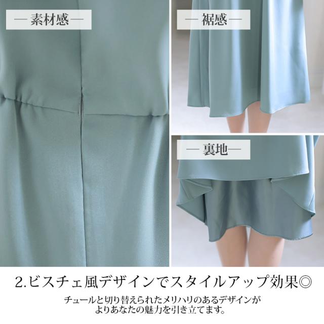 チュールと切り替えられたメリハリあるデザインがよりあなたの魅力を引き立てます。