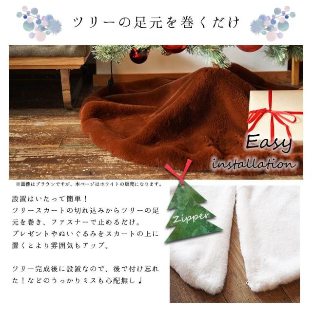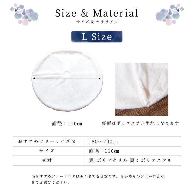 クリスマスツリー 足元 カバー ふわふわ ツリーカバー ツリースカート 配線カバー ホワイト ムートン風 Lサイズ 110cm[880024]