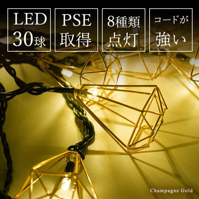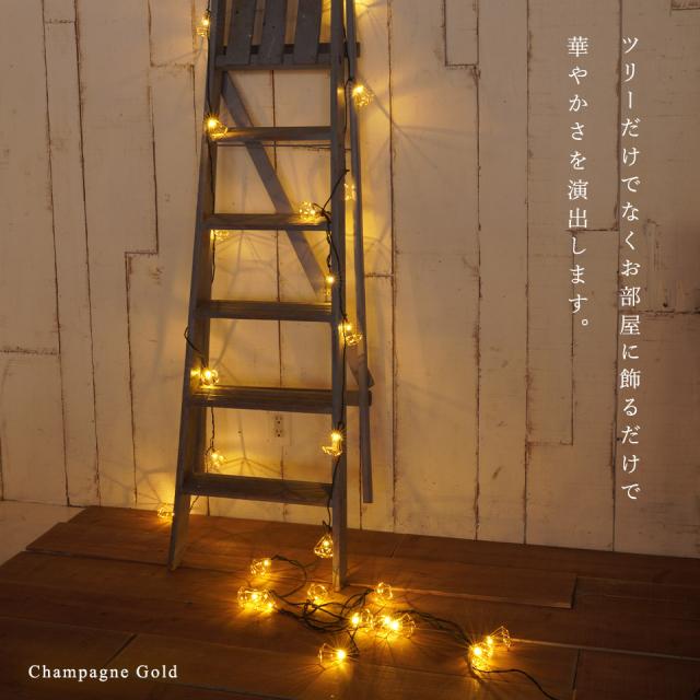 クリスマスツリー LEDライト 電飾 飾り LEDイルミネーションライト ダイヤモンドストリングイルミ [30LED] シャンパンゴールド[880069]