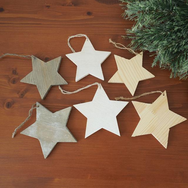 クリスマスツリー 飾り オーナメント スター (星) [小] 10cm×1.2cm グレー 木製[880114]