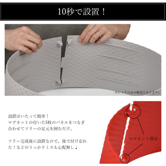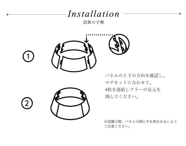 設置はいたって簡単!マグネットの付いた4枚のパネルをつなぎ合わせてツリーの足元を囲むだけ。ツリー完成後に設置なので、後で付け忘れた!などのうっかりミスも心配なし♪