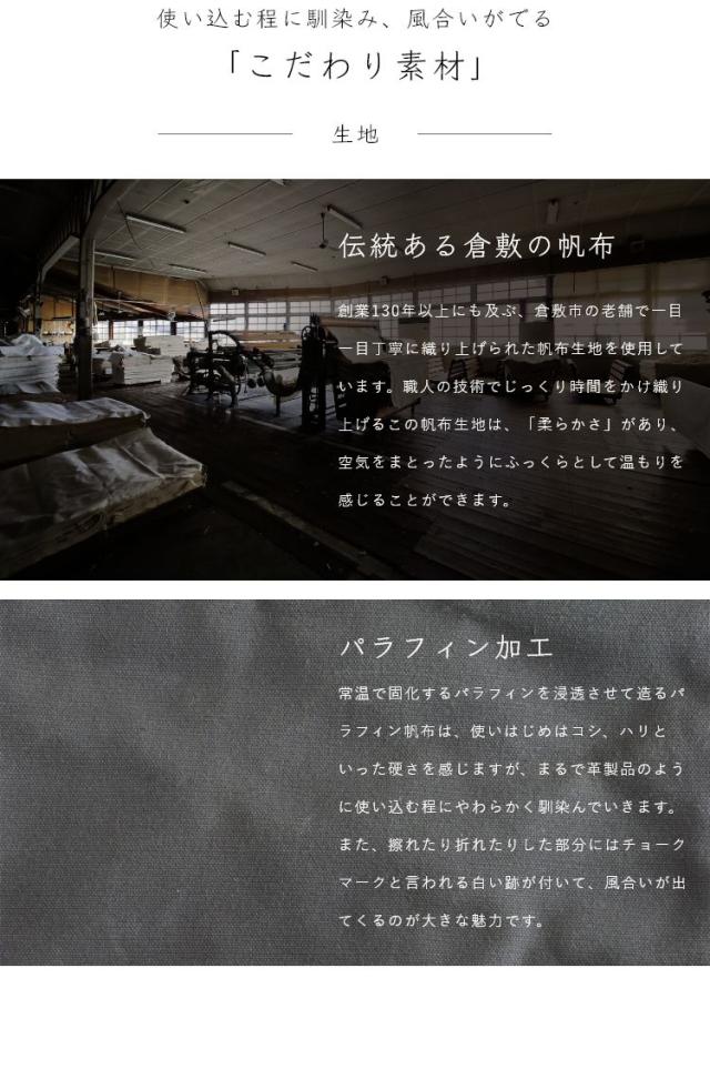 ・防水性を保つためキャンバス生地にパラフィン加工が施されています。