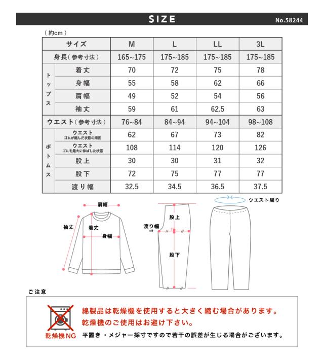 ●トップス仕様:長袖/かぶり式/衿ぐりリブ/袖口リブ