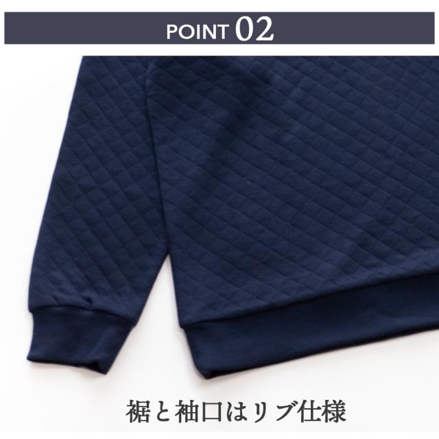 - 内側が綿100%キルティング加工のスエット 着心地、肌触り、抜群でした! 商品が届くまで手に取れない分、説明文が頼りです。 わかりやすい商品説明でした!