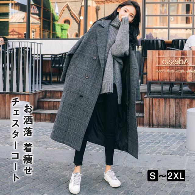 チェスターコート レディース ラシャコート ロングコート トレンチコート アウター ラシャ 春秋冬 着痩せ お洒落 上品 チェック