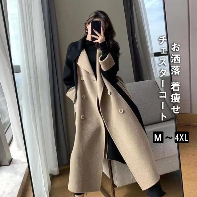 チェスターコート レディース ラシャコート ロングコート トレンチコート アウター ラシャ 春秋冬 着痩せ お洒落 スプライシング