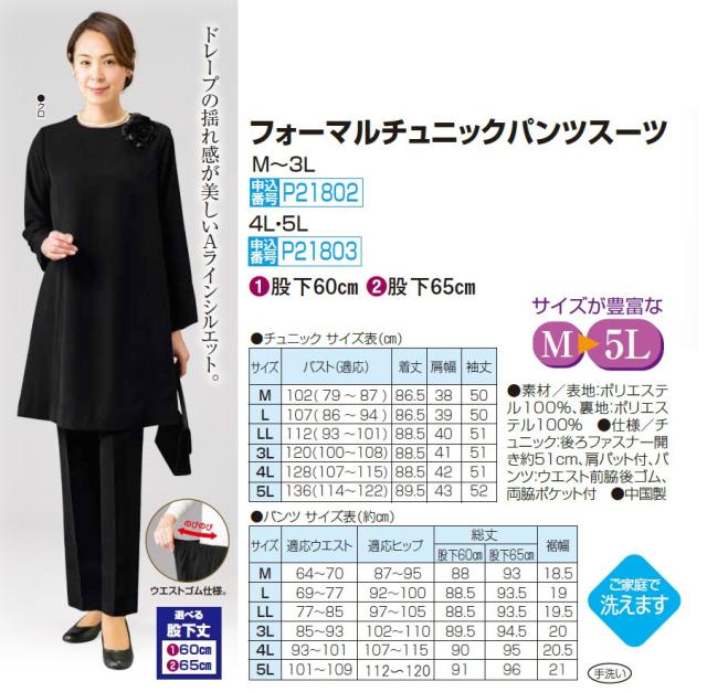 フォーマルチュニックパンツスーツ ブラック 4L 5L 大きいサイズ 選べる股下丈 スーツ セットアップ ブラックフォーマル レディース 婦人服 ミセス シニア 女性 シンプル シニアファッション 40代 50代 60代 70代 80代 母の日 お母さん 長袖 ウエストゴム フォーマルスーツ 上品 股下60cm 股下65cm 喪服 礼服 礼装 体型カバー 黒 フォーマルスーツ ブラックフォーマル