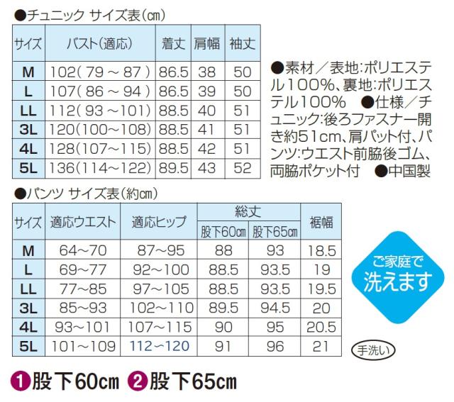 ●仕様/チュニック:後ろファスナー開き約51cm、肩パット付、パンツ:ウエスト前脇後ゴム、両脇ポケット付