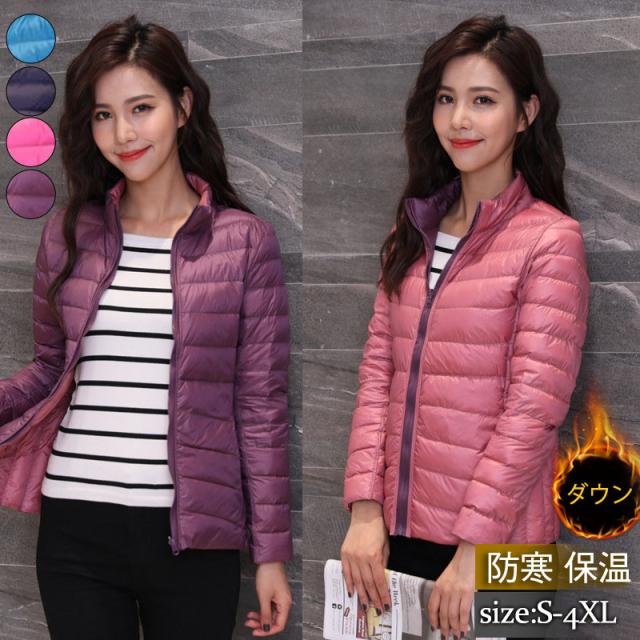 ダウンジャケット レディース ダウンコート アウター リバーシブル バイカラー 羽織り 軽量 薄手 暖か 大きいサイズ 着痩せ 防