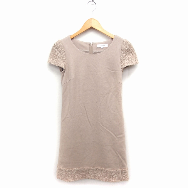 【中古】エムズセレクト m’s select ワンピース キャップスリーブ ひざ丈 丸首 ボア切替 34 ベージュ /FT レディース