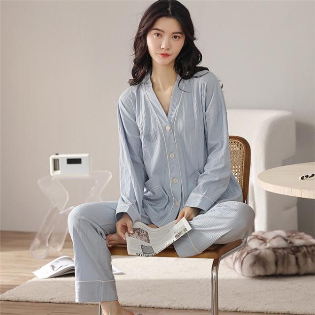 ポイント増量中 パジャマ レディース 上下セット 秋冬 長袖 ルームウエア オシャレ 寝巻き 前開け ゆったり 綿 楽チン 軽量 パンツ 入院 産後 大人用