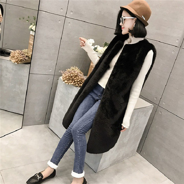 数量限定 フェイクファー ファーベスト レデイース ロング ベスト 毛皮コート アウター 毛皮ベスト 冬 ボア 韓国風 ノースリーブ フリース 防寒着 ジレ