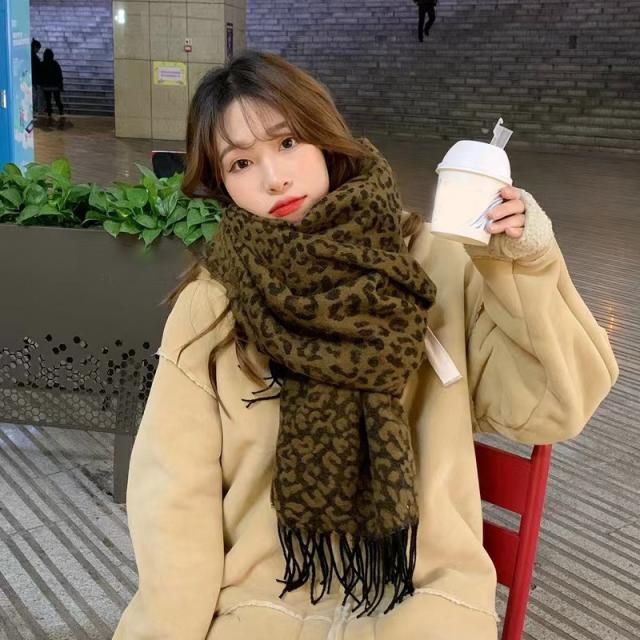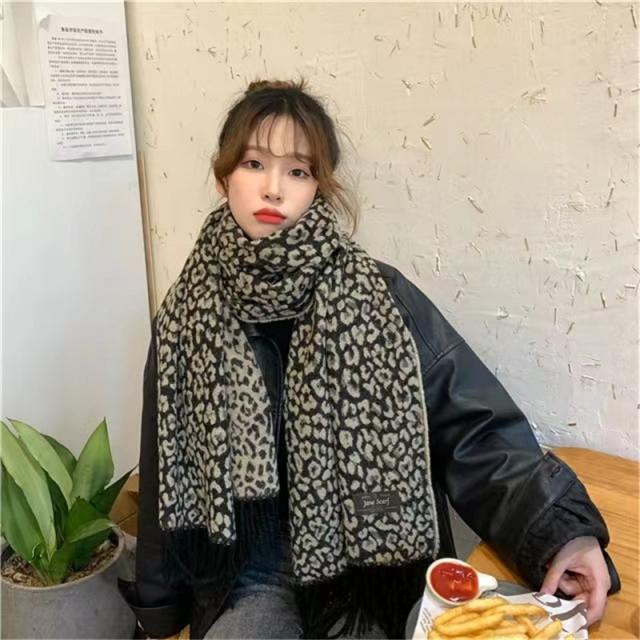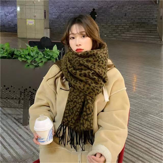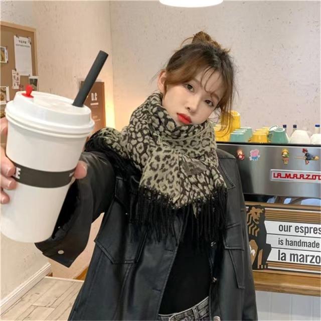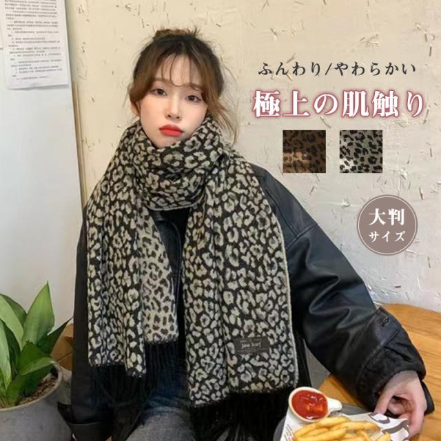マフラー ストール 大判 レディース フリンジ カシミヤタッチ リバーシブル 無地 豹柄 おしゃれ 防寒 ネックウォーマー 秋冬小