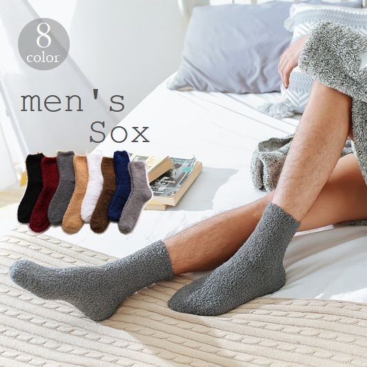 おうち時間にぴったりなもこもこ素材のメンズ用ルームソックス。