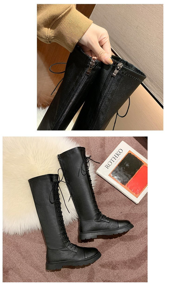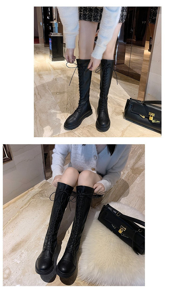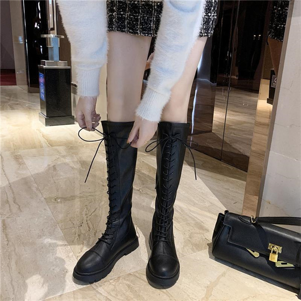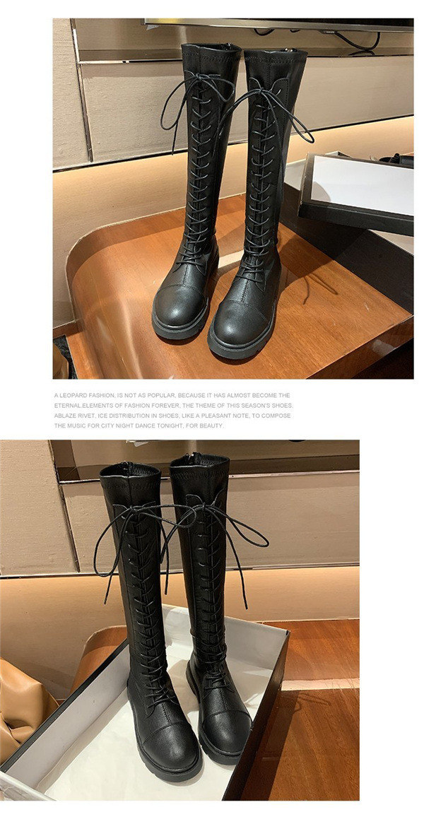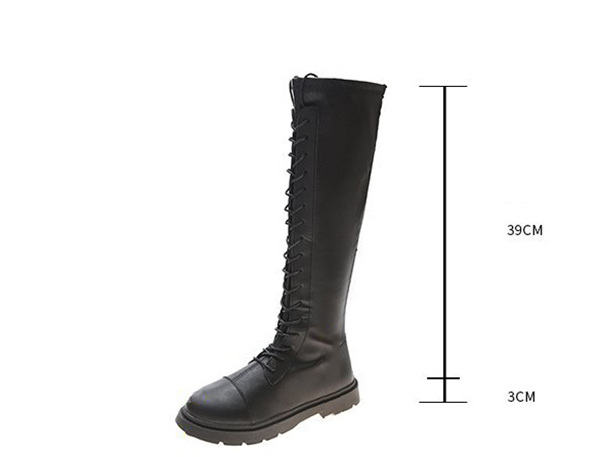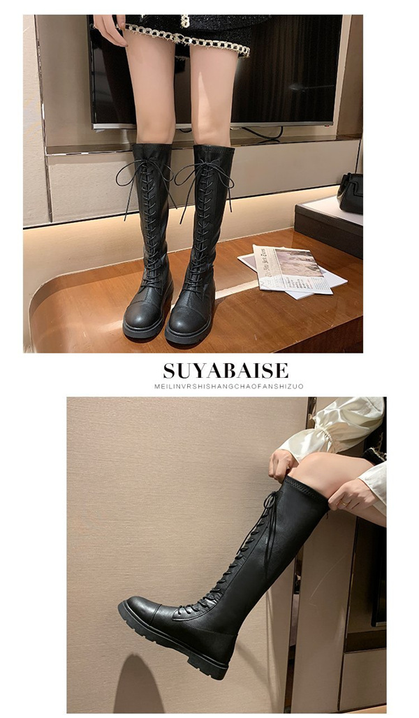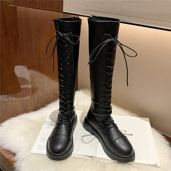 店長イチオシ ニーハイブーツ ロング丈 編み上げブーツ フラットヒール 黒 レディース 長靴 レースアップ 膝丈 美脚 歩きやすい 軽量 カジュアル おしゃれ