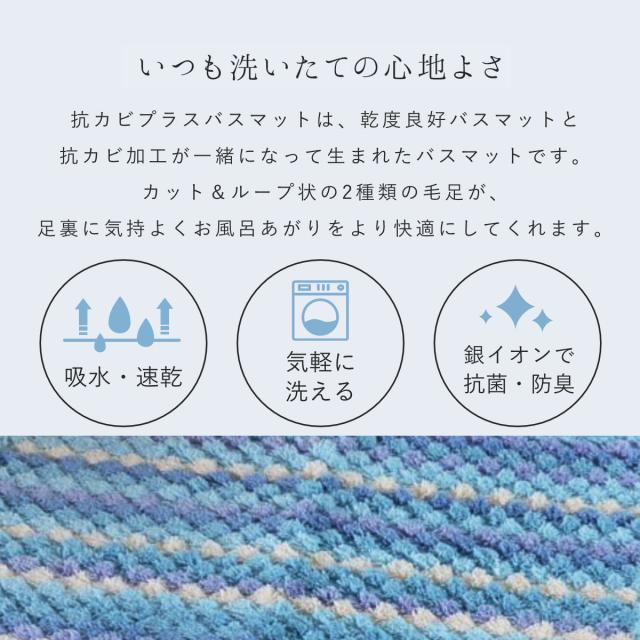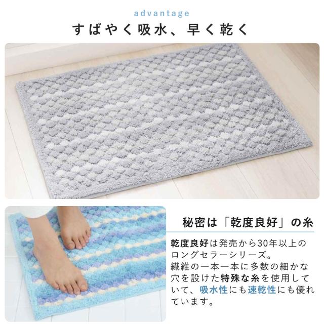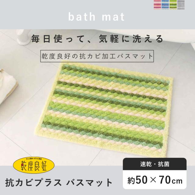 バスマット 乾度良好 抗カビプラス 50×70cm ( お風呂マット 足拭きマット すべり止め お風呂 バスグッズ 防カビ 浴室マット 50×70 玄関マット 吸水 抗菌 防臭 洗濯OK )