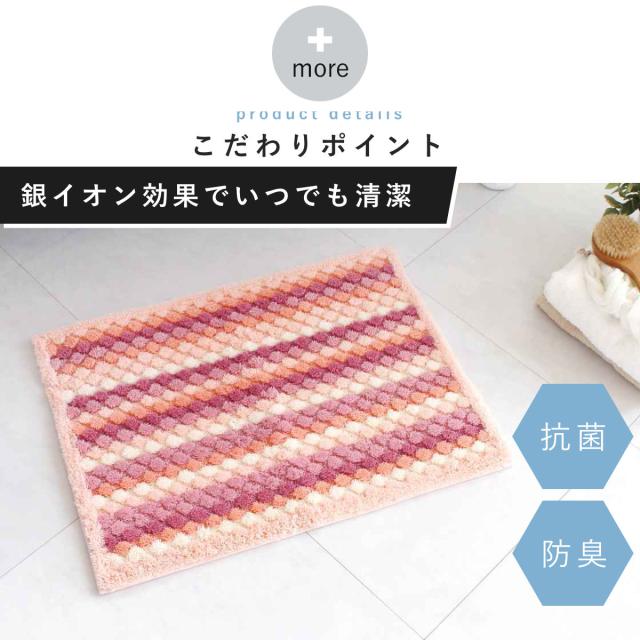 洗っても効果が続く抗菌防臭加工付きで、マット上の菌の増殖を抑制するので、いつまでも衛生的にお使いいただけます。