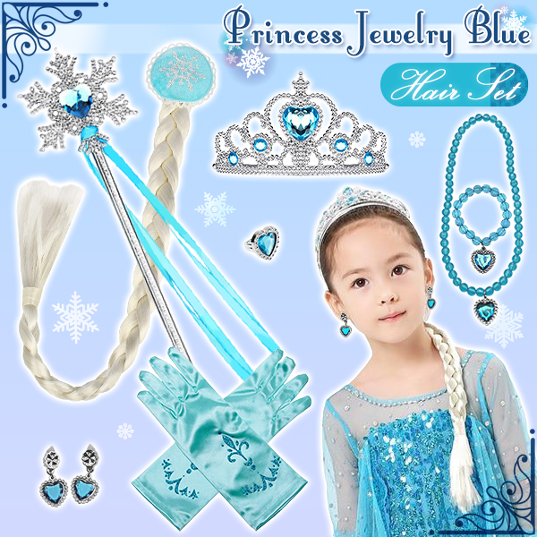 【最安値挑戦中】プリンセスジュエリー ブルー(ヘアー付き) アクセサリー セット コスプレ ティアラ ステッキ ネックレス イヤリング ブレスレット 指輪 手袋 ウィッグ 三つ編み プリンセス ドレスアップ お姫様 仮装 誕生日 ハロウィン クリスマス ネコポス送料無料!