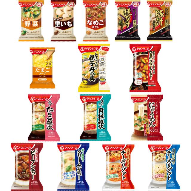 アマノフーズ フリーズドライ 昼食ランチ 15種30食 詰め合わせ セット 【 送料無料 沖縄以外】 インスタント 食品 味噌汁 スープ 雑炊 カレー 丼の具 惣菜 にゅうめん リゾット シチュー 備蓄 非常食 保存食 2026 バレンタイン ホワイトデー
