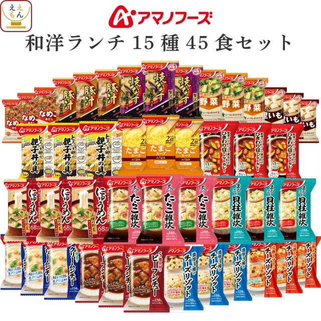 アマノフーズ フリーズドライ 昼食ランチ 15種45食 詰め合わせ セット 【 送料無料 】 インスタント 食品 即席 味噌汁 スープ 雑炊 カレー 丼の具 惣菜 にゅうめん リゾット シチュー 備蓄 非常食 保存食 バレンタイン 2026 ホワイトデー