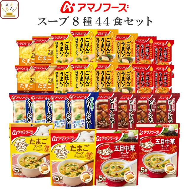 アマノフーズ フリーズドライ スープ シチュー 8種44食 詰め合わせ セット 【 送料無料 沖縄以外】 インスタント 食品 洋風 和風 即席スープ ビーフシチュー クリームシチュー 常温保存 保存食 非常食 2026 バレンタイン ホワイトデー