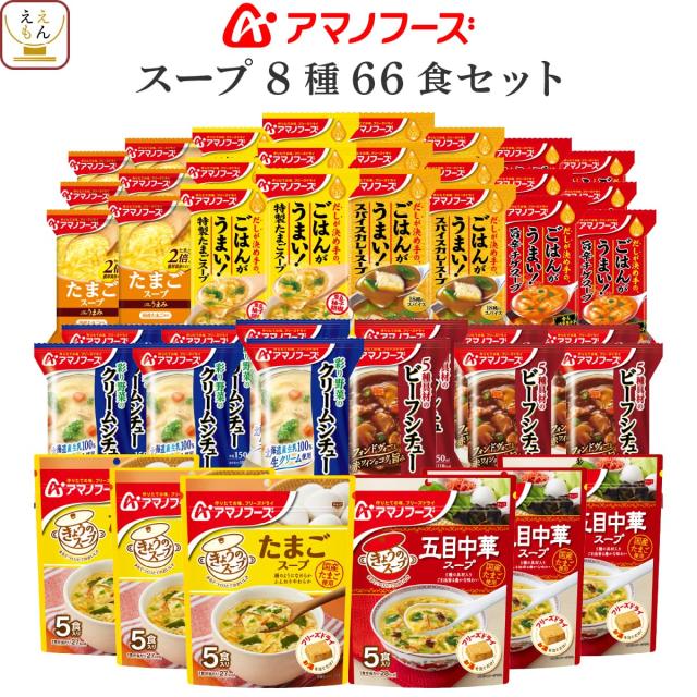 アマノフーズ フリーズドライ スープ シチュー 8種66食 詰め合わせ セット 【 送料無料 】 インスタント 食品 洋風 和風 即席スープ ビーフシチュー クリームシチュー 常温保存 まとめ買い 保存食 非常食 バレンタイン 2026 ホワイトデー