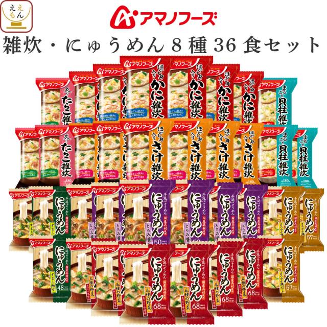 アマノフーズ フリーズドライ 雑炊 にゅうめん 8種36食 詰め合わせ セット 【 送料無料 沖縄以外】 インスタント食品 国産米 海鮮 ぞうすい 手延べ そうめん 常温保存 和食 低カロリー ホワイトデー 2026 母の日 お返し