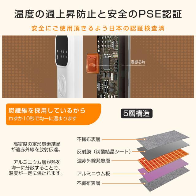 【アップした合金発熱シート】10秒速暖、電源オンにしてすぐにポカポカです。炭素結晶シートによって、より効率的かつ均等に発熱できます。温風が出ないから、肌の乾燥が気になりません。