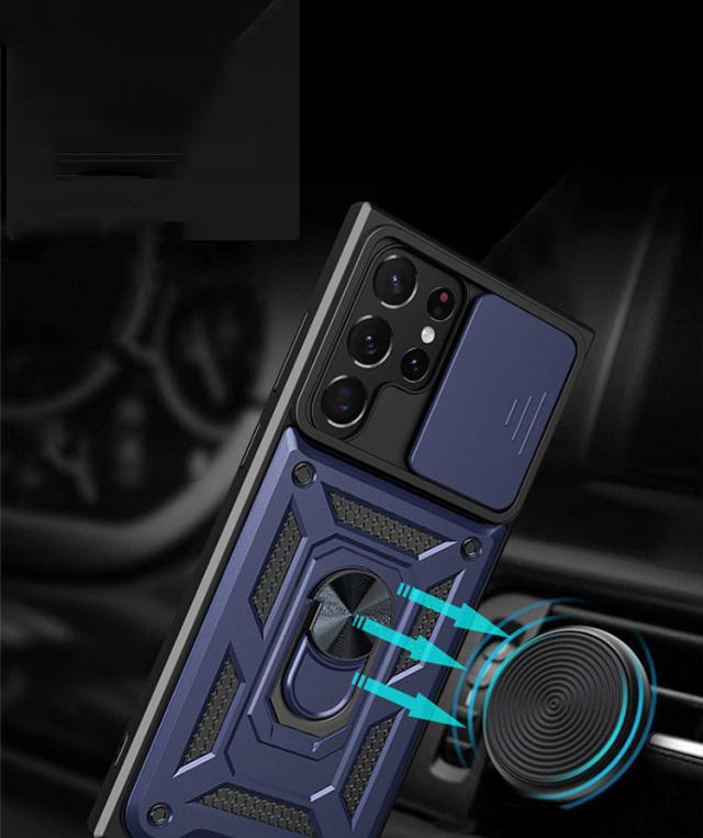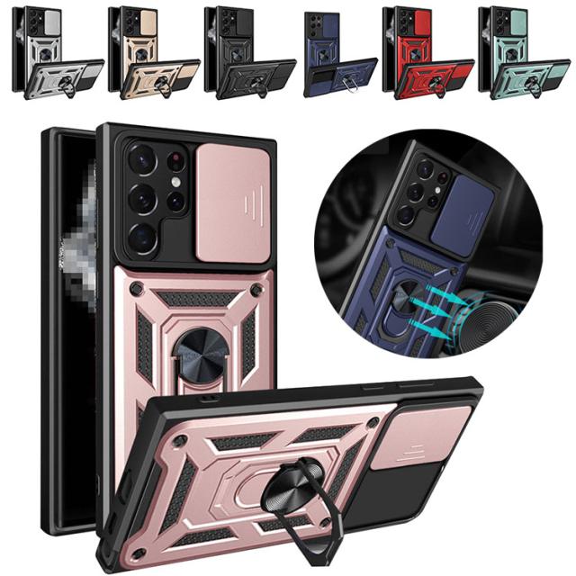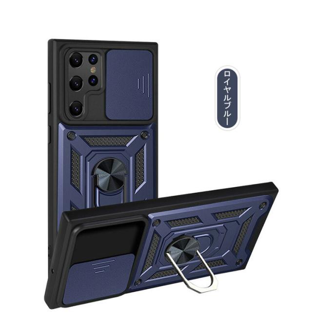 Galaxy S23/S23+/S23 Ultra 耐衝撃 ケース/耐衝撃カバー スライド式カメラレンズカバー付き レンズ保護 スタンド機能 リング付き 2重構造 Samsung サムスン ギャラクシーS23 SCG19 SC-51D/プラス/ウルトラ SCG20 SC-52D おすすめ おしゃれ スマートフォン/スマホケース/カバー