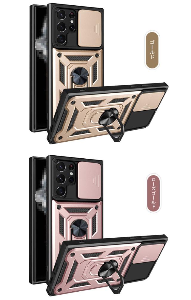 Samsung Galaxy S23 / S23+ / S23 Ultra 耐衝撃 ケース / 耐衝撃カバー スライド式カメラレンズカバー付き レンズ保護 スタンド機能 リング付き 2重構造 アンドロイド おすすめ おしゃれ スマートフォン/スマフォ/スマホケース/カバー