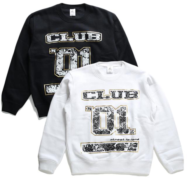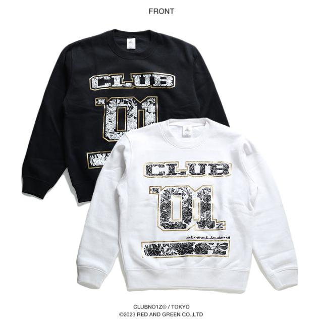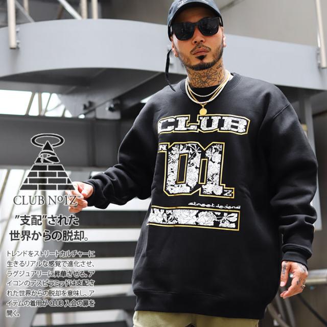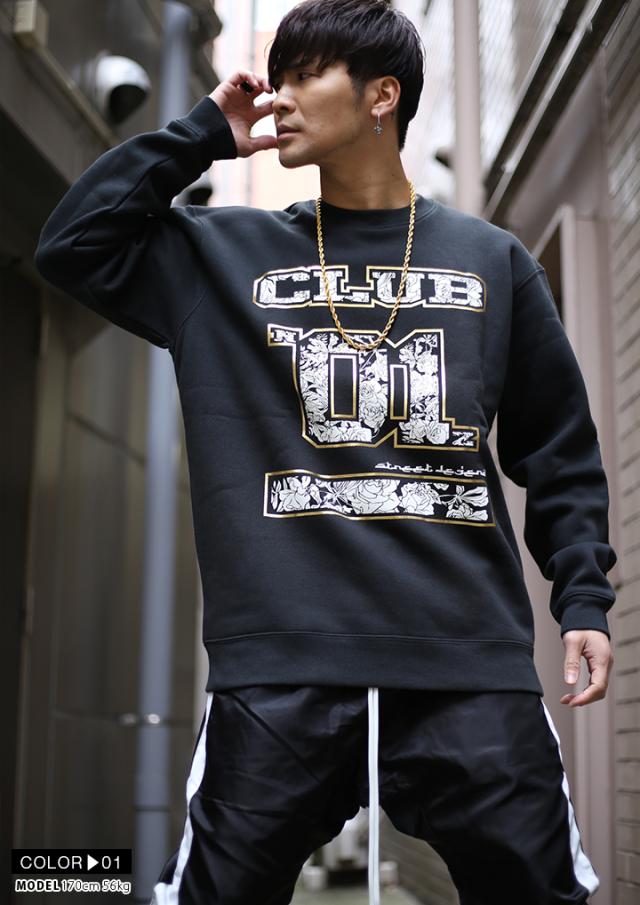 b系 ストリート系 服 メンズ レディース スウェット クラブノイズ CLUB NO1Z CLUBNO1Z 長袖 トレーナー ビッグシルエット 裏起毛 金箔 ナンバー 薔薇 総柄 XL 2L LL 2XL 3L XXL 大きいサイズ ギフト CN-TL-SW-001