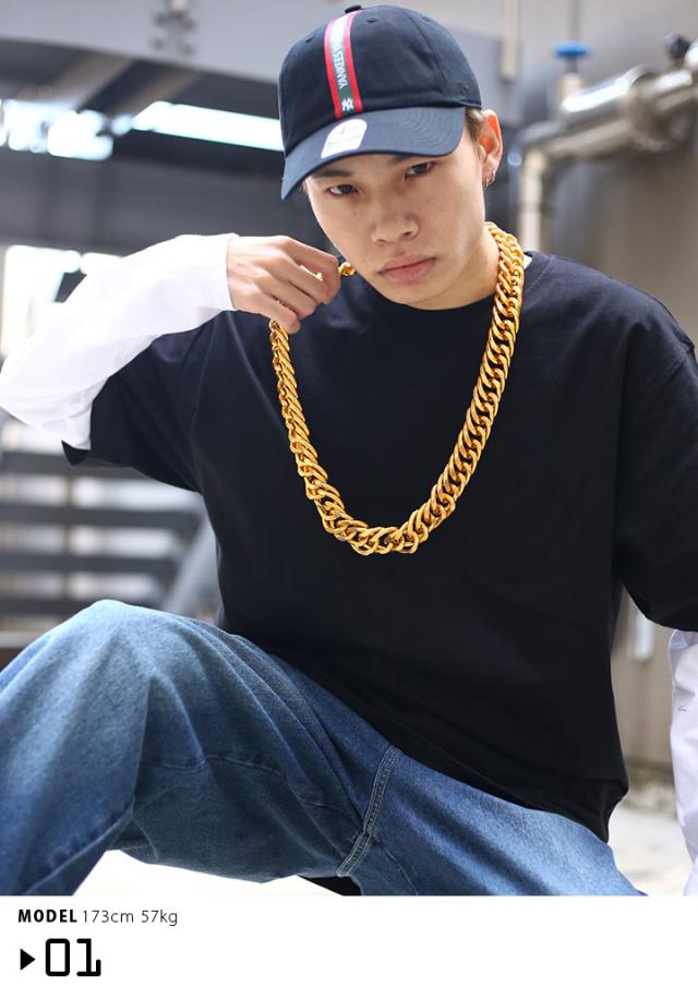 横幅約3cm、厚さ約1cmの超極太喜平チェーンを採用したラグジュアリーな仕上がり。B系・HIPHOPスタイルには欠かせないブリンブリンスタイル。