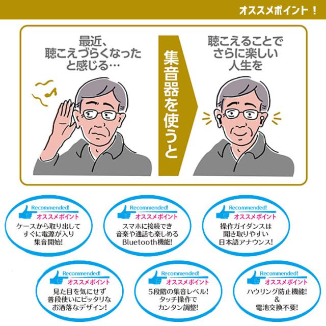 集音器 Bluetooth イヤホン機能付き集音器 ワイヤレス 音楽 通話会話 テレビの音 インターフォン 呼出 スマートなデザイン 宅配便送料無料
