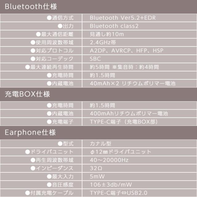 付属品:Bluetoothイヤホン ×1セット/充電ケース ×1個/USB TYPE-C ⇔ USB充電コード ×1本/スペアイヤーピース(S/L) ×各1セット ※Mは本体に装着/取扱説明書 ×1冊/保証書 ×1枚