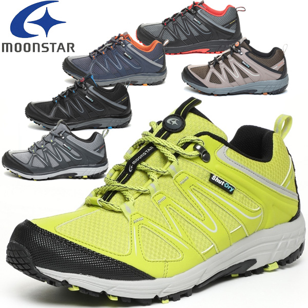ムーンスターのメンズアウトドアスニーカーです。ムーンスター独自開発の透湿防水テクノロジー「ShutDry」を搭載。雨など外部からの水の浸入を防ぎながら靴内の湿気(ムレ)を外に逃がす機能で、靴内環境を快適に保ちます。ミッドソールには反発弾性力に優れたEVAを採用しています。ヒールの高さは4.0cmで、重量は26.0cmで片足約370gです。【ShutDry(R)】水蒸気のみを通す微細な穴を備える透湿防水フィルムが、外部からの雨・水の浸入を防ぎながら靴内の湿気を外部に逃がして快適です。【防水設計(4cm4時間防水)】地面から4cm、4時間の浸漬状態での防水性を備えた防水機能です。【エアロクッション】通気性をもつソフトクッション素材のインソールが足裏に優しくフィットします。【高反発弾性ソール】ミッドソールのEVA素材に反発弾性力が約50%アップ(当社比)した素材を搭載しています。【ワイド設計】足幅の広い方に対応した商品です。【つま先ゆったり】つま先にゆとりをもたせた形状で、足の指を圧迫せずにのびのび動かせます。【Ag+抗菌防臭】銀イオンの抗菌作用でにおいのもととなる菌の増殖を抑制し、防臭効果を発揮します。天然由来成分で安全です。【サラリーナ】汗や水分を素早く吸収・拡散し、靴内をサラサラな状態に保つメッシュを使用しています。【耐摩耗ラバー】すり減りが少なく高い耐久性を発揮するラバーを使用しています。