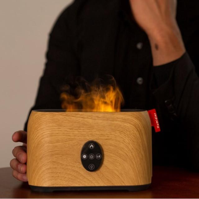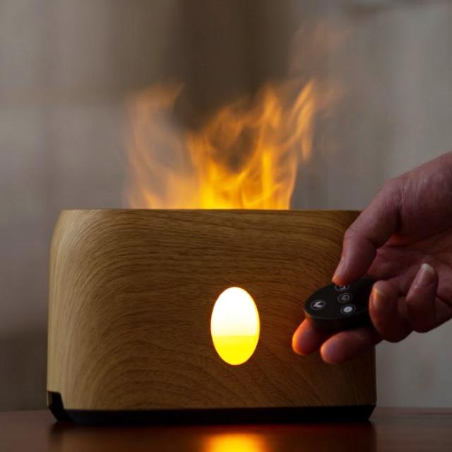 ■商品名:焚火 アロマディフューザー 炎 加湿器 焚き火 加湿機 LED ライト 木目調 アロマオイル リモコン操作 モバイルバッテリー
