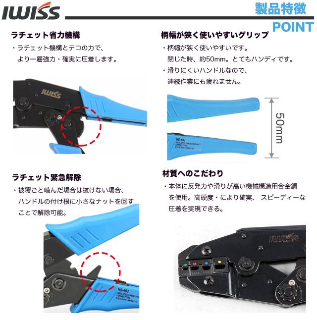 IWISS 絶縁被覆付圧着端子圧着ペンチ エンドスリーブ圧着工具 圧着マーク付き 0.25-6.0mm2 HS-40J