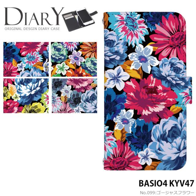 BASIO4 KYV47 ケース 手帳型 ベイシオ4 カバー デザイン かわいい ゴージャスフラワー