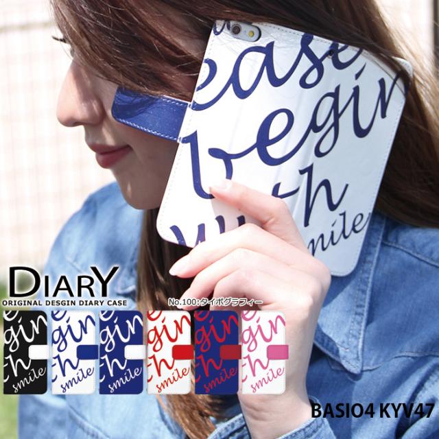 BASIO4 KYV47 ケース 手帳型 ベイシオ4 カバー デザイン かわいい おしゃれタイポグラフィー