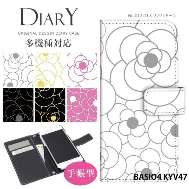BASIO4 KYV47 ケース 手帳型 ベイシオ4 カバー デザイン かわいい カメリアパターン