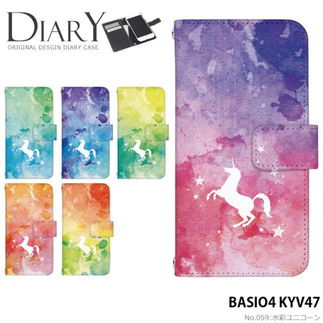BASIO4 KYV47 ケース 手帳型 ベイシオ4 カバー デザイン かわいい 水彩ユニコーン