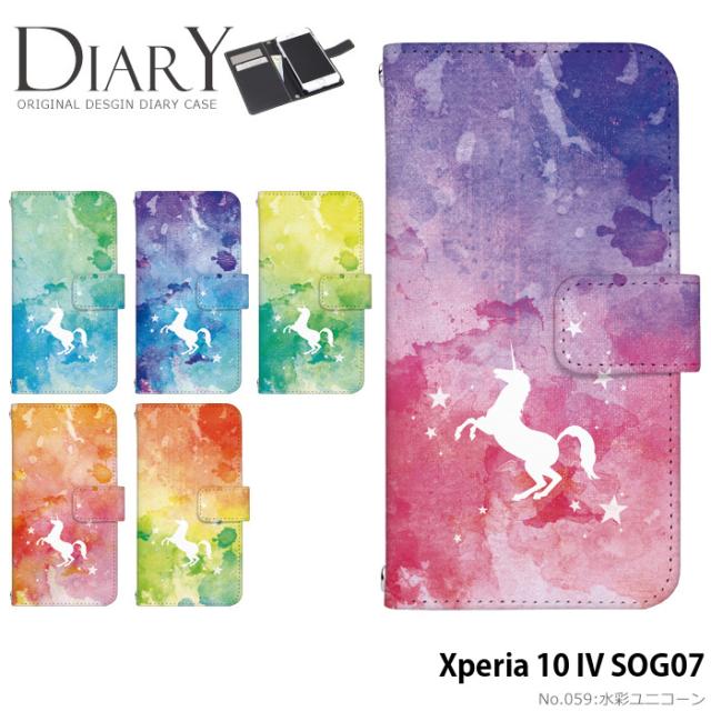 Xperia 10 IV SOG07 ケース 手帳型 xperia10iv エクスペリア10iv カバー デザイン かわいい 水彩ユニコーン