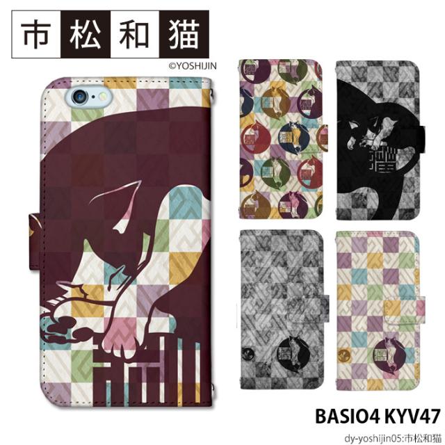 BASIO4 KYV47 ケース 手帳型 ベイシオ4 カバー デザイン かわいい市松和猫 yoshijin