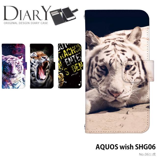 AQUOS wish SHG06 ケース 手帳型 アクオス ウィッシュ カバー デザイン 動物 おしゃれ 虎
