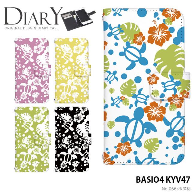 BASIO4 KYV47 ケース 手帳型 ベイシオ4 カバー デザイン かわいい ホヌ柄 アロハ