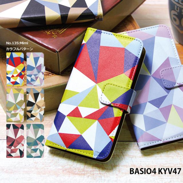 BASIO4 KYV47 ケース 手帳型 ベイシオ4 カバー デザイン かわいい Mimiカラフルパターン
