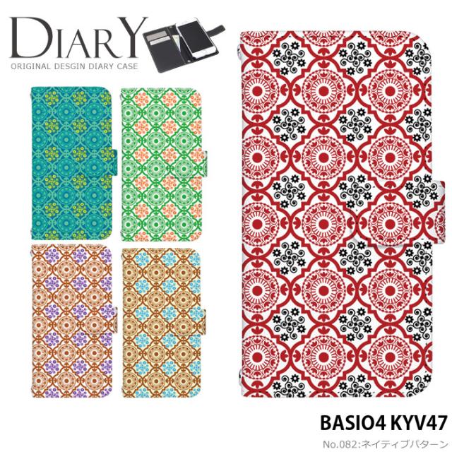 BASIO4 KYV47 ケース 手帳型 ベイシオ4 カバー デザイン 民族 ネイティブパターン